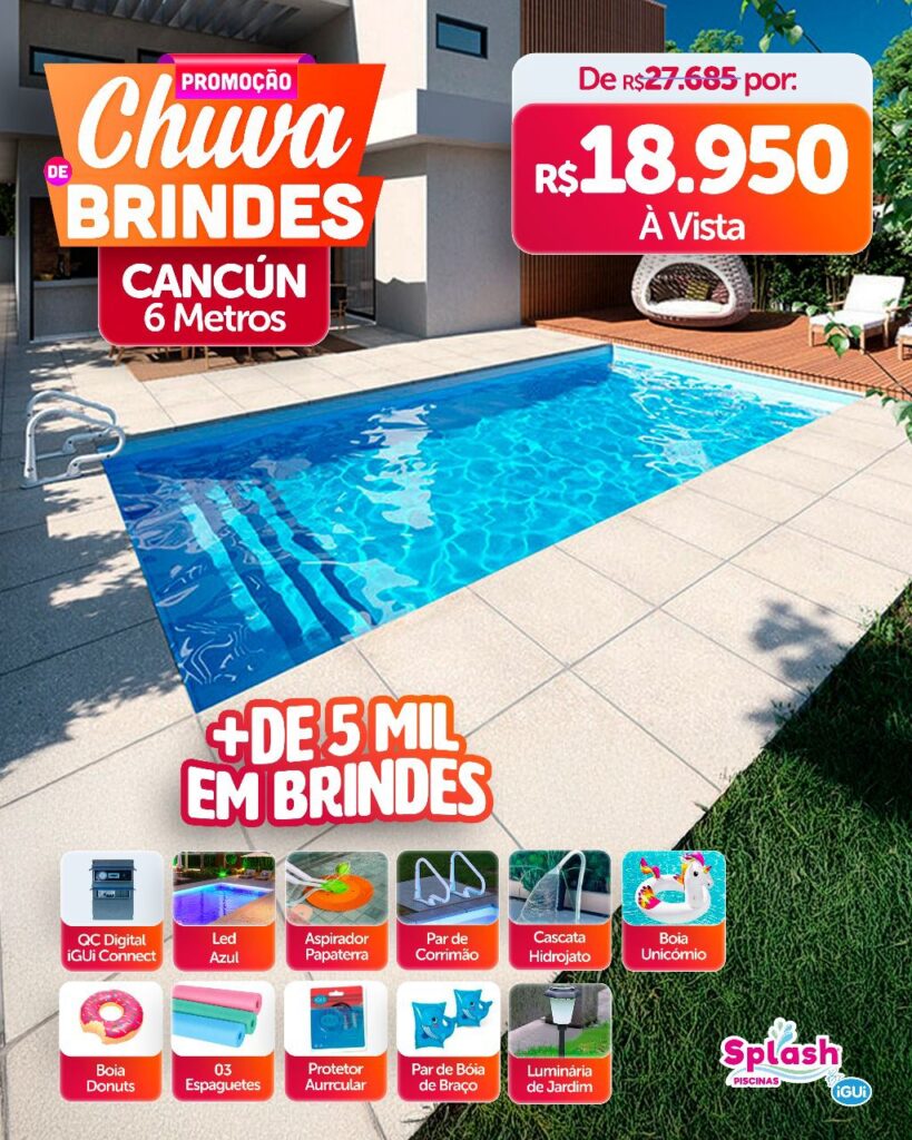 A splash como líder de vendas no segmento de piscinas de fibra, produz para seus clientes o melhor custo beneficio. Uma vez que produzimos nossas piscinas com a melhor matéria prima do mercado, com a melhor qualidade dentre todas as marcas apresentadas no mercado hoje. Itens como: Reforço termoplástico, filtro sem sucção interna na piscina, gel coach e outros detalhes fazem da nossa piscina a piscina com o melhor custo e beneficio do mercado.